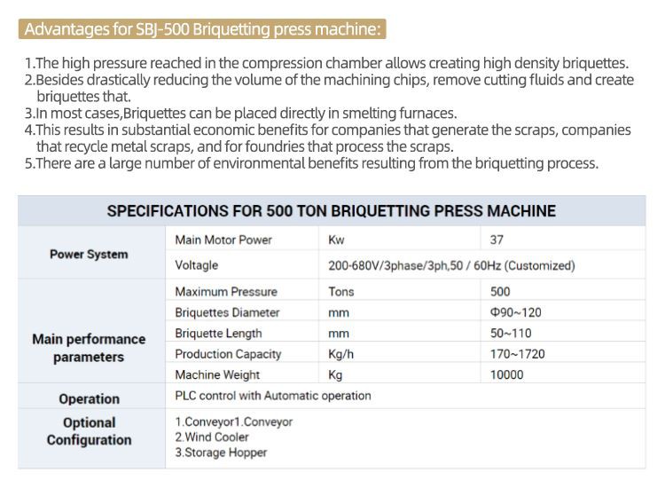 Hlau Swarf Briquetting yog siv rau compress hlau sawdust (steel, cam khwb cia hlau, txhuas & tooj liab) rau hauv cylindrical briquets ntawm siab ceev kom txo tau hlawv poob hauv smelting, kom rov ua dua & smelting yooj yim & yooj yim.Cast hlau sawdust, tom qab nias rau hauv briquets, tuaj yeem hloov npua hlau ua raw khoom.